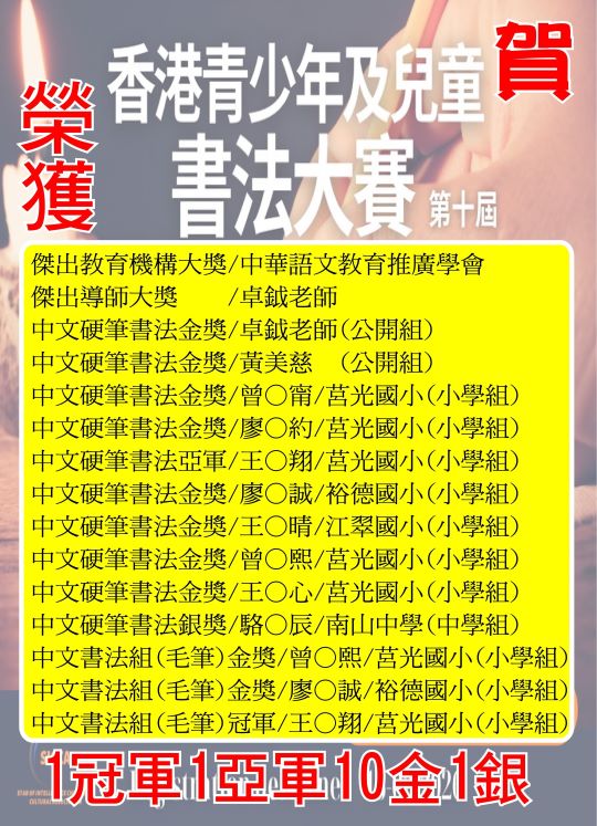 (競賽)賀!第十屆香港青少年及兒童書法大賽得獎名單